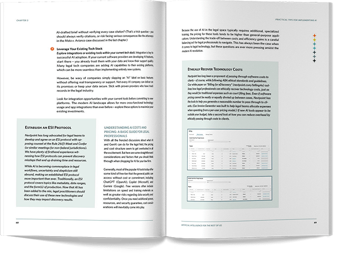Legal practitioners get actionable guidance to adopt AI efficiently and responsibly. Here’s a snapshot of what it includes: