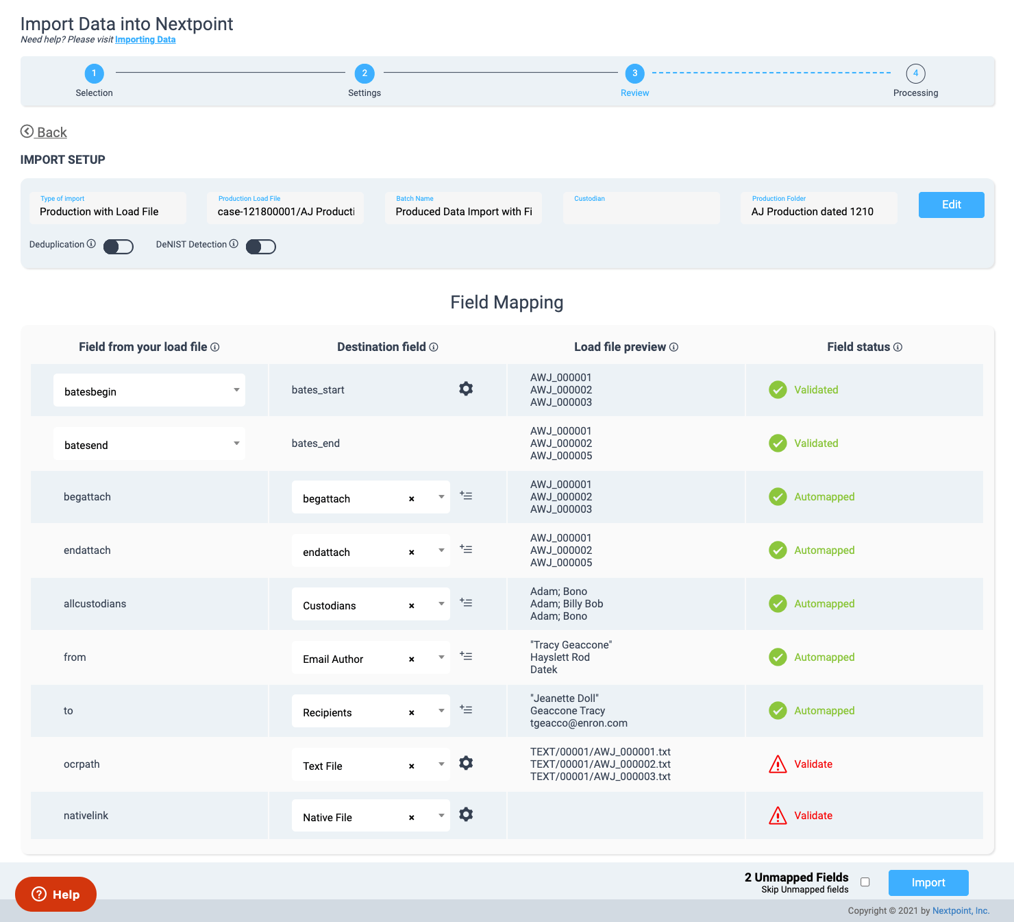 To learn more on importing produced data with a load file, check out our Nextpoint Help Center article on the Load File Imports.